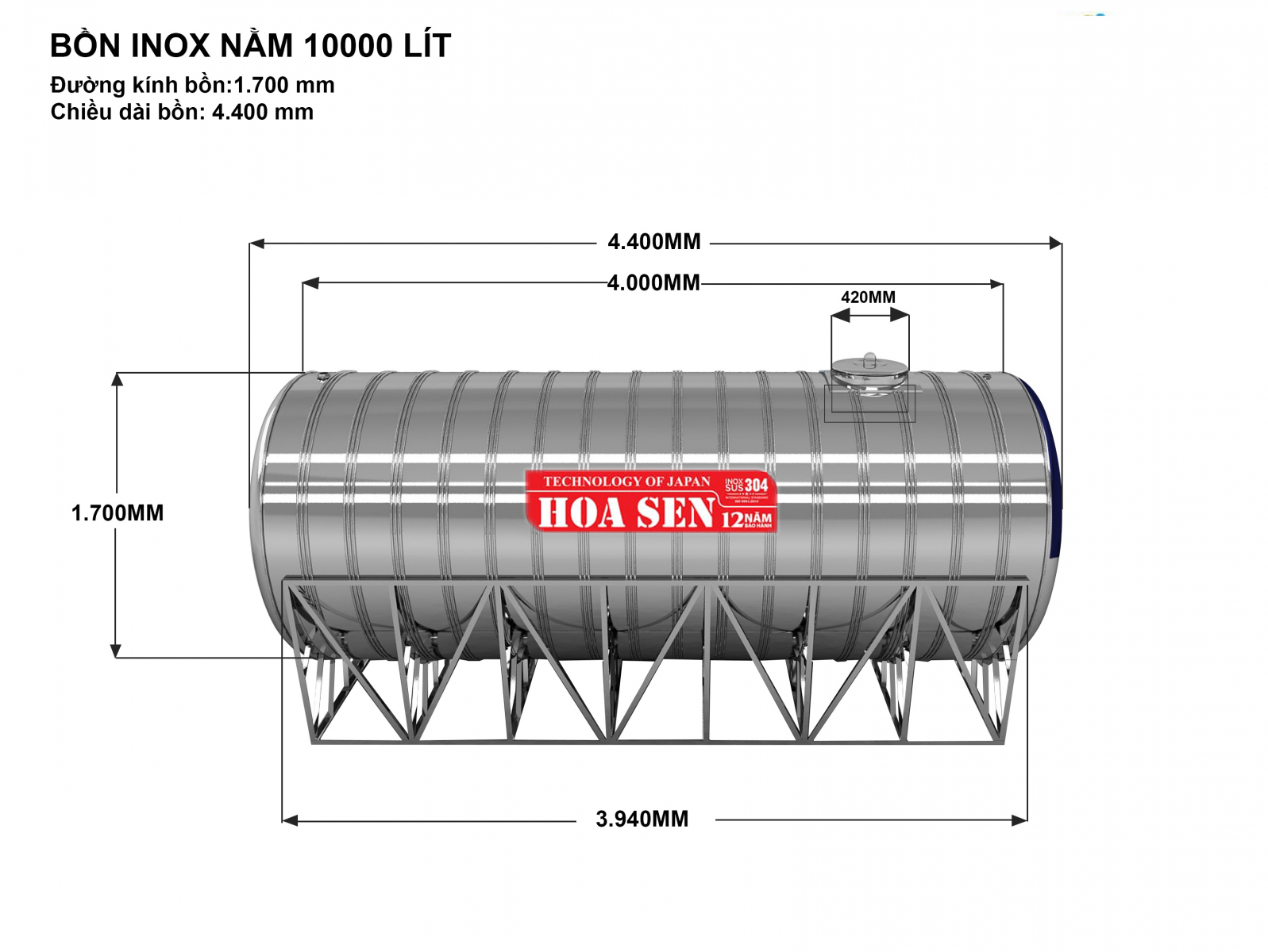 Thông số bồn nước inox HOA SEN 10000 lít ngang SUS 304